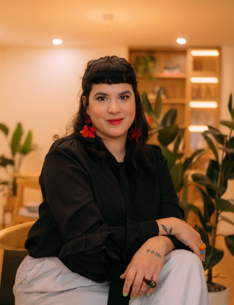 Rebeca Tavares trilha um percurso singular que une a escala estrutural da arquitetura à sensibilidade expressiva das artes visuais. Com uma base sólida e um olhar apurado para o Urbanismo pela UFES, sua trajetória é marcada pela compreensão profunda das dinâmicas espaciais e sociais. Atualmente, Rebeca expande esse repertório ao especializar-se em Artes Plásticas pela Faculdade de Belas Artes da Universidade do Porto, uma transição que confere aos seus projetos uma visão estética mais autoral, versátil e conectada às manifestações artísticas contemporâneas.